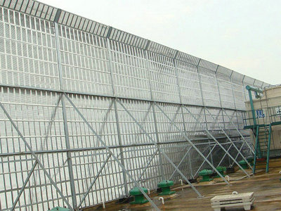 冷却塔声屏障采用混合型声屏障,顶部为吸声单元,以下部分为隔声单元。合理确定声...